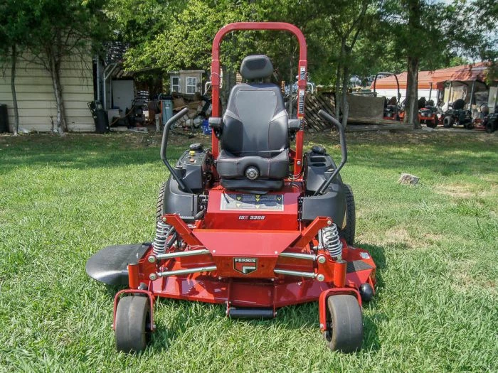 - Ferris’ patented forefront suspension system utilizes four upper and lower control rods and mower-specific shocks