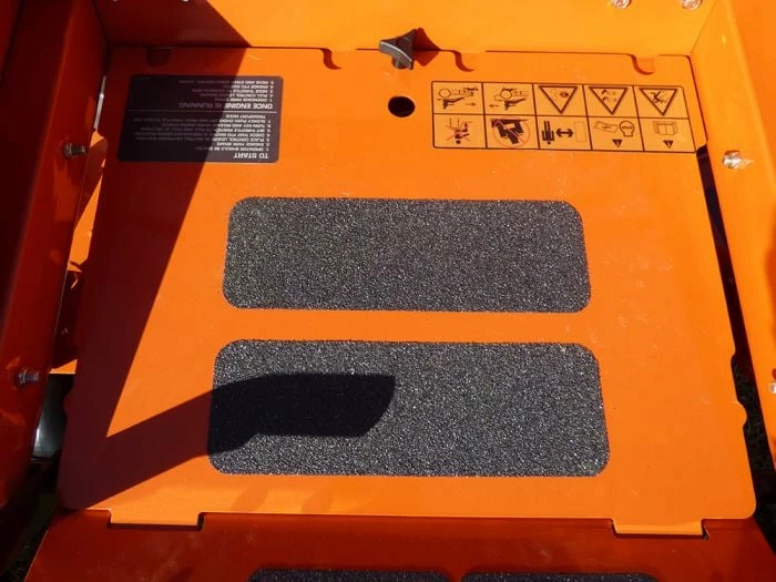 - Removable foot pan for quick access to deck belt, pulleys, spindles, and cleaning