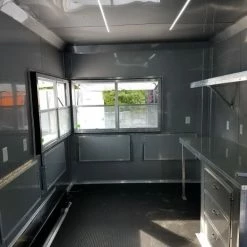 - 5′ Concession window with glass and screens and flip up counter outside
