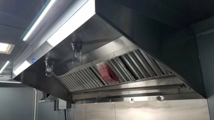 - Aluminum Mil Finish on Walls and Ceiling, Stainless Steel Behind the Hood