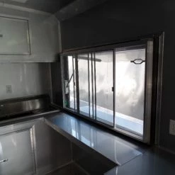 - 5′ Concession window with sliding glass and screens and a flip up counter