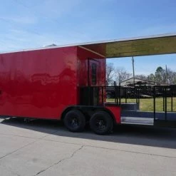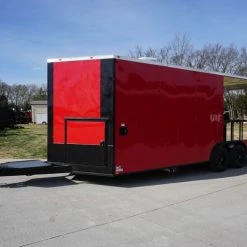 8.5 x 22 Red V-Nose Porch Style Concession with Blackout Trim Package