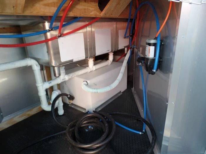 - Sink package with 30 gal. fresh, 50 gal. waste, propane on demand water heater