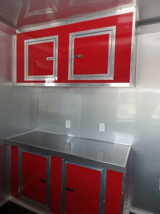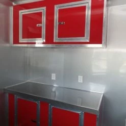 - Aluminum mill walls and ceiling and red cabinet facings