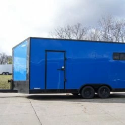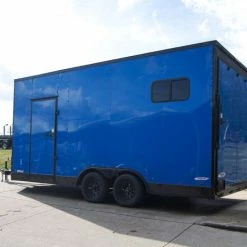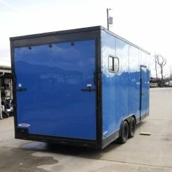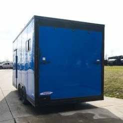 8.5×18 Blue V-Nose Slanted Top Enclosed Trailer with Blackout Package