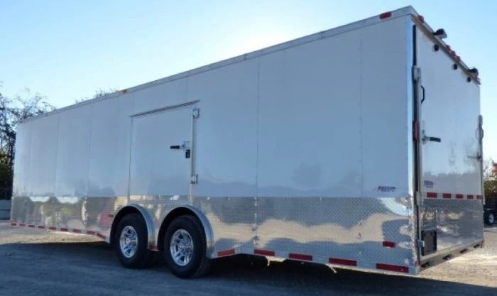Enclosed Trailer 8.5′ x 28′ White Motorcycle Car Event Trailer