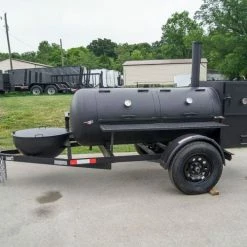 Pull Behind BBQ Smoker 250 Gallon with Round Charcoal Grill 3500lb Axle