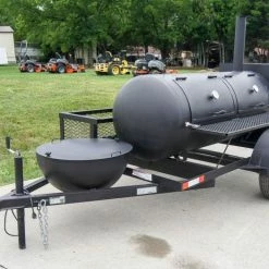 Pull Behind BBQ Smoker 250 Gallon with Round Charcoal Grill 3500lb Axle