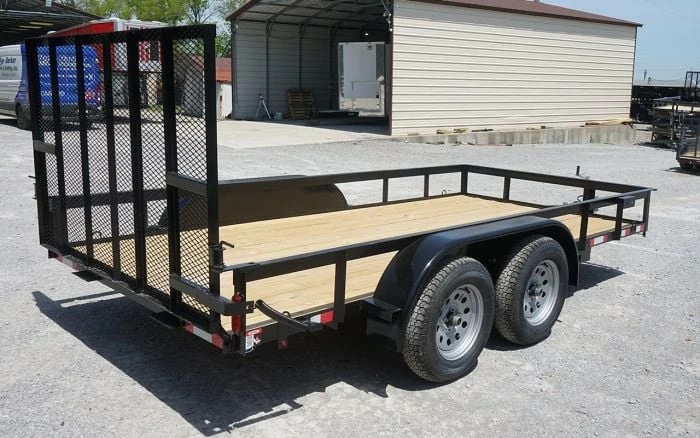 Utility Trailer 6.4′ x 14′ Spring Assist A-Frame Gate Tire Rack Tandem Axle